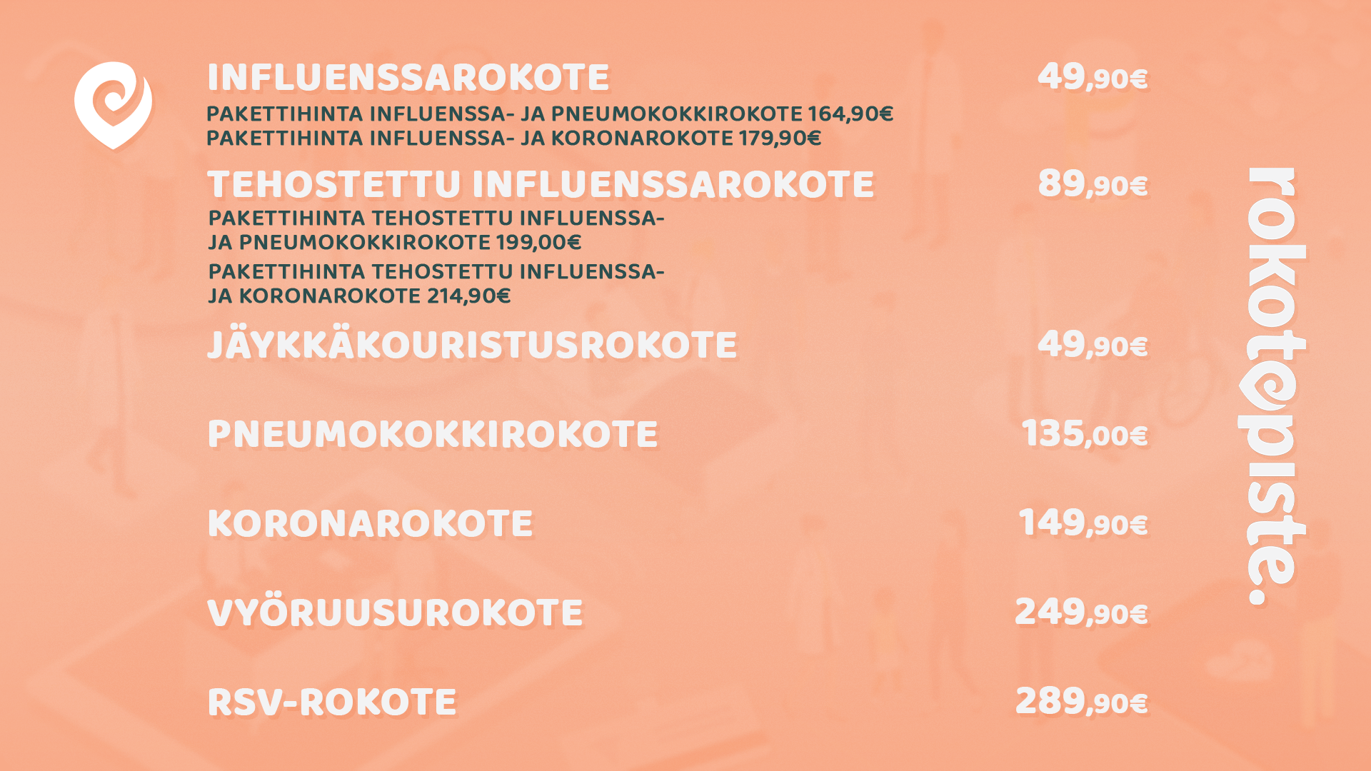 Pakettihinta pneumokokki + influenssa 164,90 €